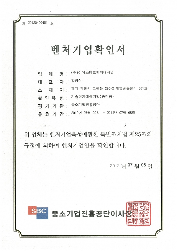 Venture Enterprise > Certificate