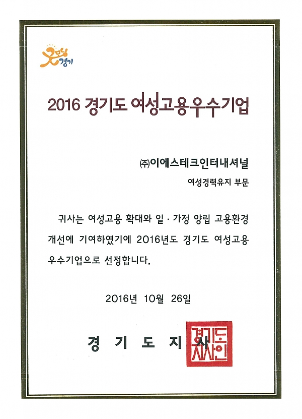 Excellent Company in the employment of women (Gyeonggi-do) > Certificate